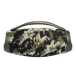Hemos mejorado aún más nuestro altavoz Bluetooth portátil más potente. La icónica silueta del JBL Boombox 3 presenta una nueva y atrevida versión con un resistente asa de metal y empuñaduras de silicona, dos tapas laterales y un tejido resistente al agua y al polvo. También se ha rediseñado el interior, con un nuevo subwoofer que ofrece graves mucho más profundos y el arrollador JBL Replica Pro Sound, todo ello con menor distorsión. Gracias a las 24 horas de tiempo de reproducción, podrá acompañarte desde el entrenamiento de la mañana hasta la cita nocturna con tus amigos. Y para disfrutar de un sonido prácticamente ilimitado, puedes conectar varios altavoces con la aplicación JBL Portable.
